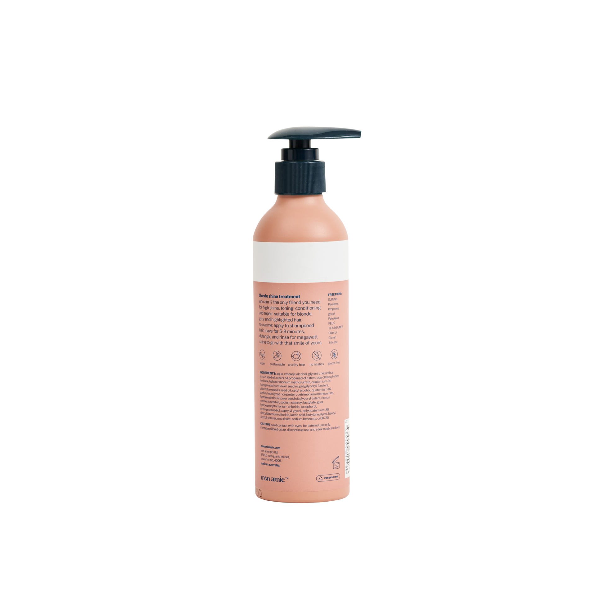 Basically, we wanted to make a beautifully brightening, toning treatment that would make your hair shiny like glass and smooth as silk whilst brightening your blonde- and being completely weightless for ALL hair types. For hair so bright, healthy, and shiny it will light up other people’s day as well.