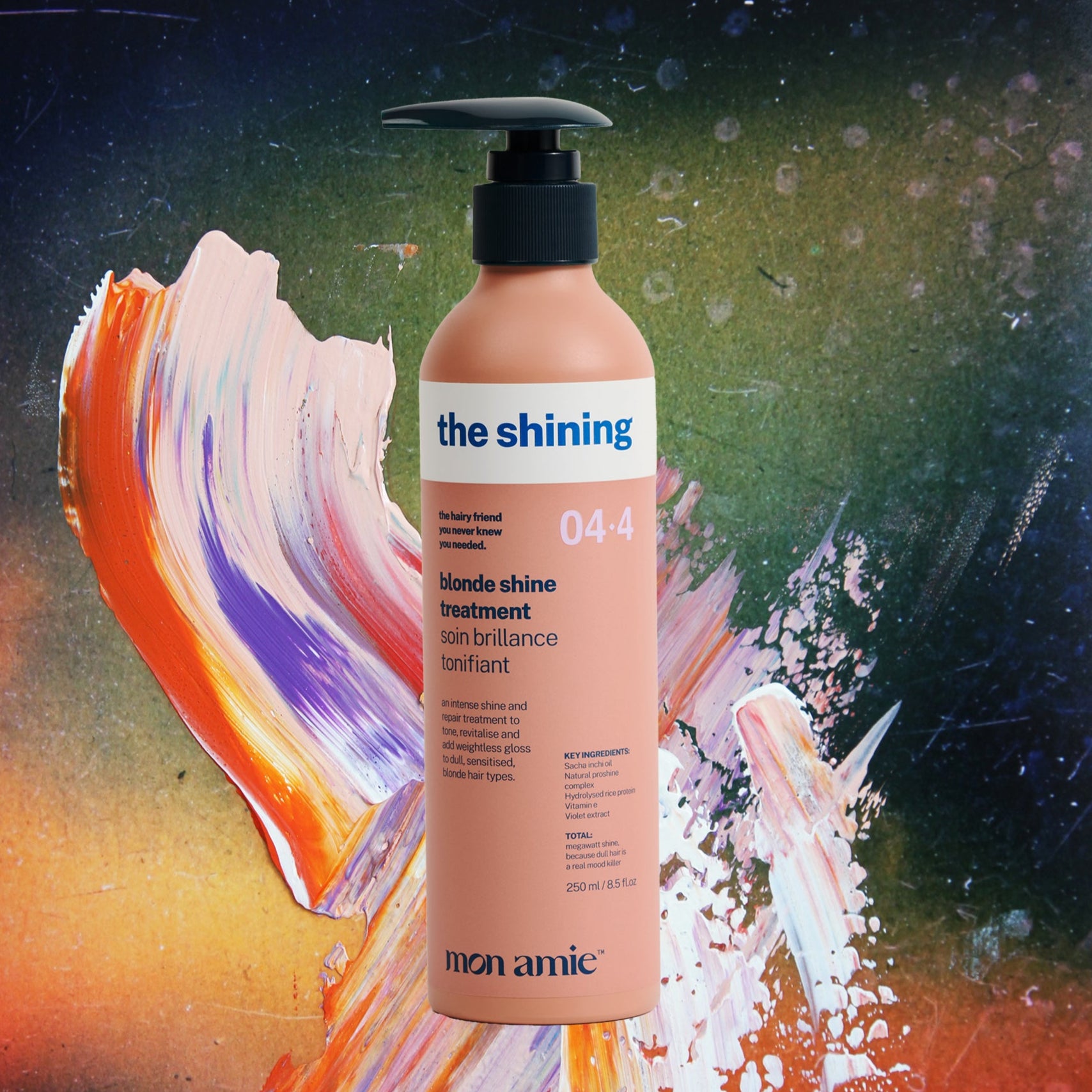 Who am I? The Shining- for hair SO shiny, not even Jack Nicholson will scare you. The new addition you need for high shine, toning, intensive conditioning, and repair. Suitable for blonde, grey, and highlighted hair of all hair types.
